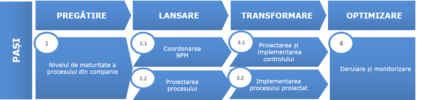 - Managementul de Program și Proiect: gestionează implementarea noilor procese;